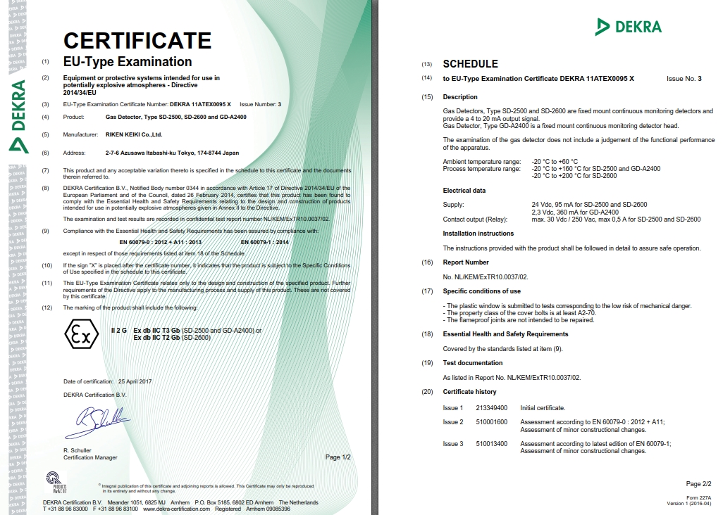 ATEX証 SD-1,SD-1D,SD-1GH,SD-1DGH KEMA10ATEX0083X Issue No.6