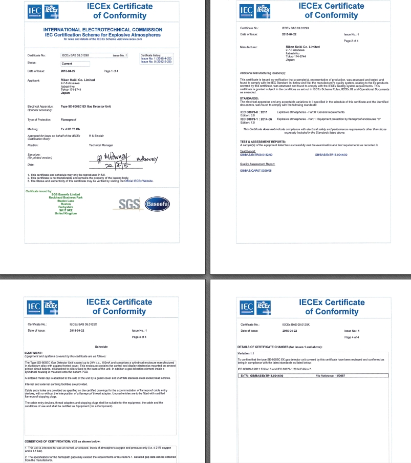 IECEx証 SD-805EC IECExBAS09.0129X Issue No.1