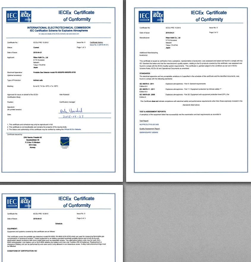 IECEx証 RX-8500,RX-8700 IECExPRE15.0012 Issue No.0