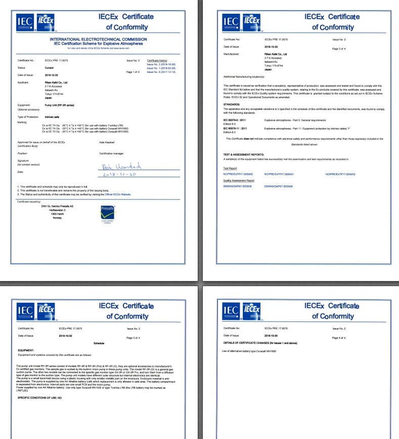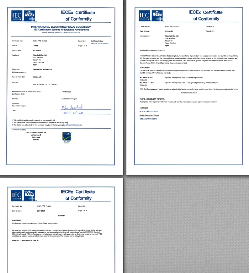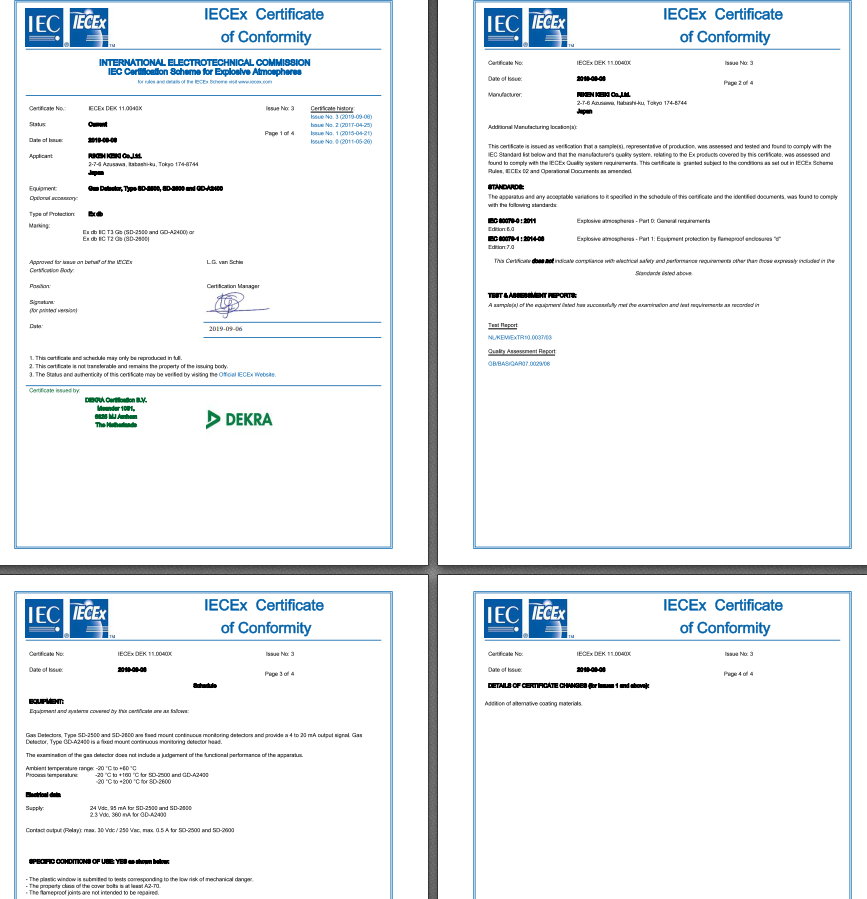 IECEx証 CO-03,GP-03,HS-03,OX-03 IECEx DEK 13.0092 Issue No.1
