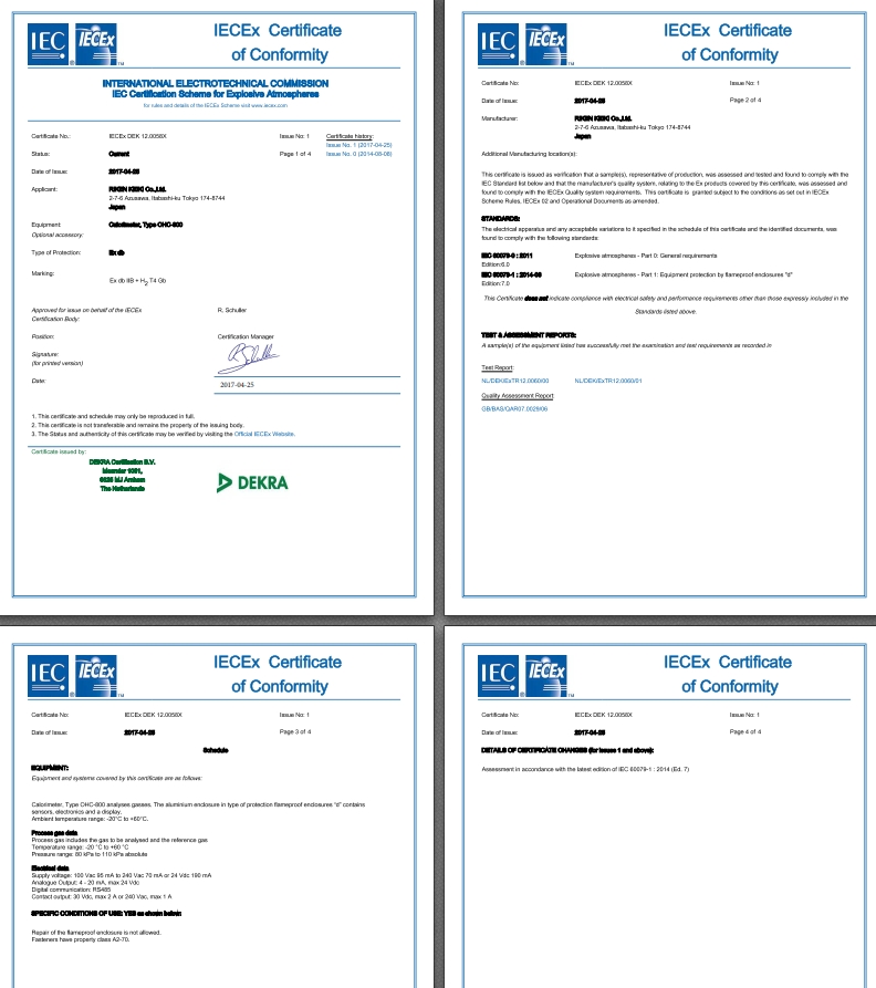 IECEx証 OHC-800 IECExDEK12.0058X Issue No.1