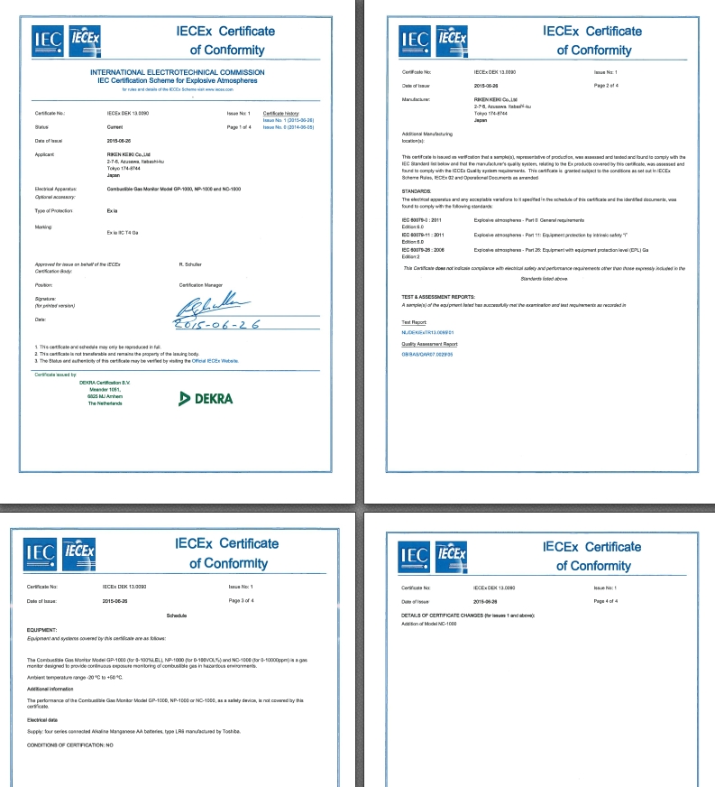 IECEx証 GP-1000,NP-1000,NC-1000 IECExDEK13.0090 Issue No.1